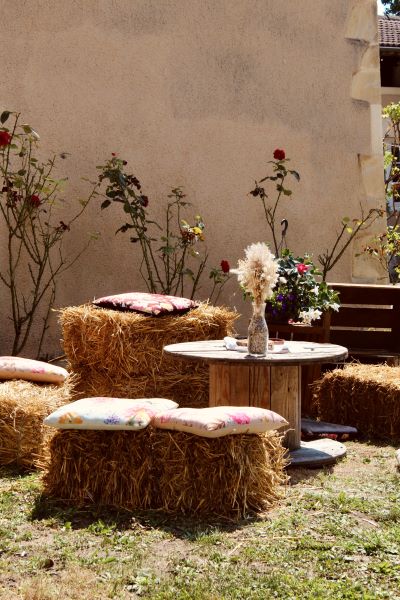 Dans un décor chaleureux mêlant bois, fleurs séchées et guirlandes lumineuses, les invités ont profité d’un apéritif en musique avec un saxophoniste, créant une ambiance champêtre et festive.